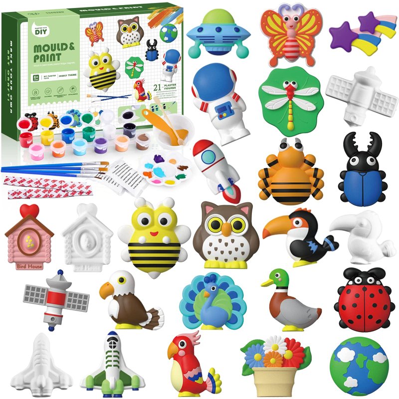 VCENT TOY Kids Arts and Crafts Set Painting Kit, STEAM Creative Activity DIY Toys for Boys Girls Toddlers, Ceramics Plaster Painting Insects Birds Space Figurines