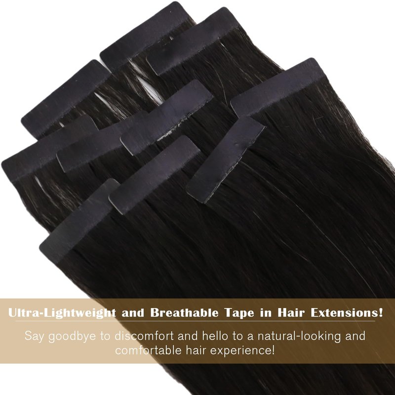 - ✭【Specifications & Purchase Guidance】: Our tape in hair extensions black ombre come in 20-piece and 10-piece sets, available in lengths ranging from 14 to 24 inches. Each piece typically weighs 2.5 grams, except for the 12-inch extensions which weigh 2 grams each. For achieving a full head look, we recommend using between 40 to 60 pieces. Note that longer lengths may appear thinner despite having the same weight per piece due to the spread of volume over a larger area.