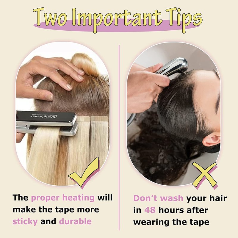 - ✭【3 Important Tips for Longer-Lasting Use】✷After installation, gently heat the tape with a heating plate to ensure a better fit with your hair. ✷✷Avoid contact with water for 48 hours after installation to maintain the integrity of the tape. ✷✷✷We have additional replacement tape.