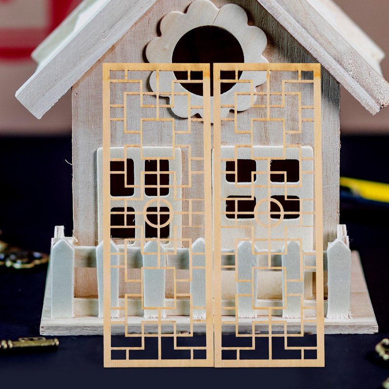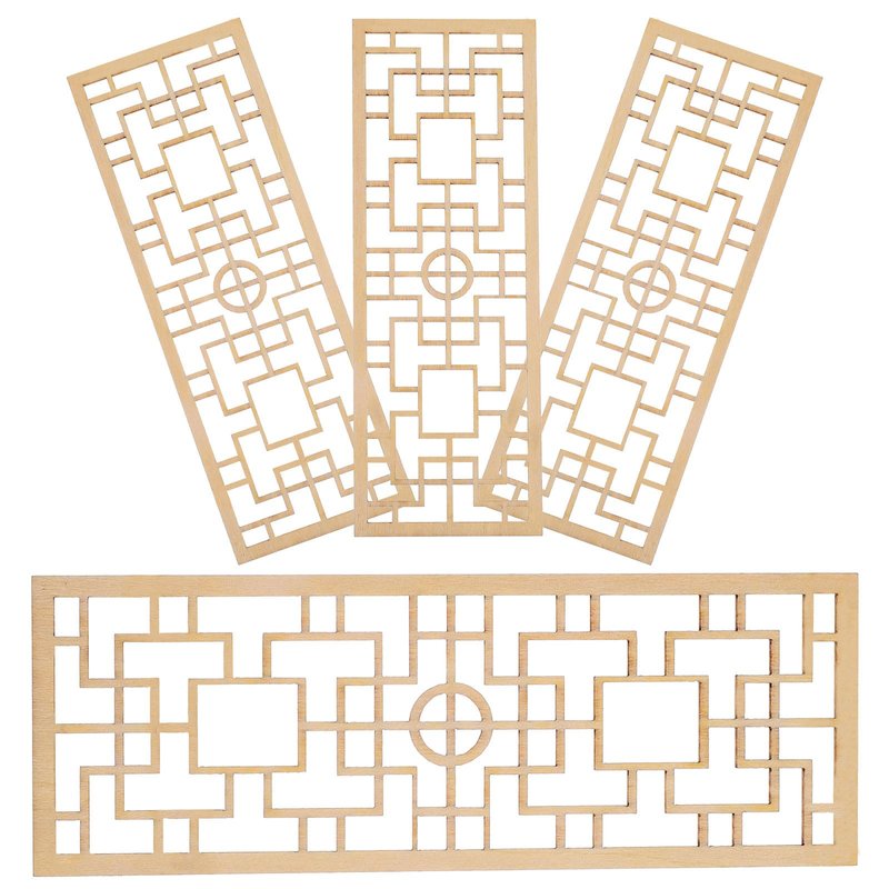 Veemoon 4pcs Mini Doll House Screen, Miniature Room Divider Wood Dollhouse Screen DIY Chinese Screen Room Privacy Divider Dollhouse Furniture Accessories Hollow Screen Model Retro Decor