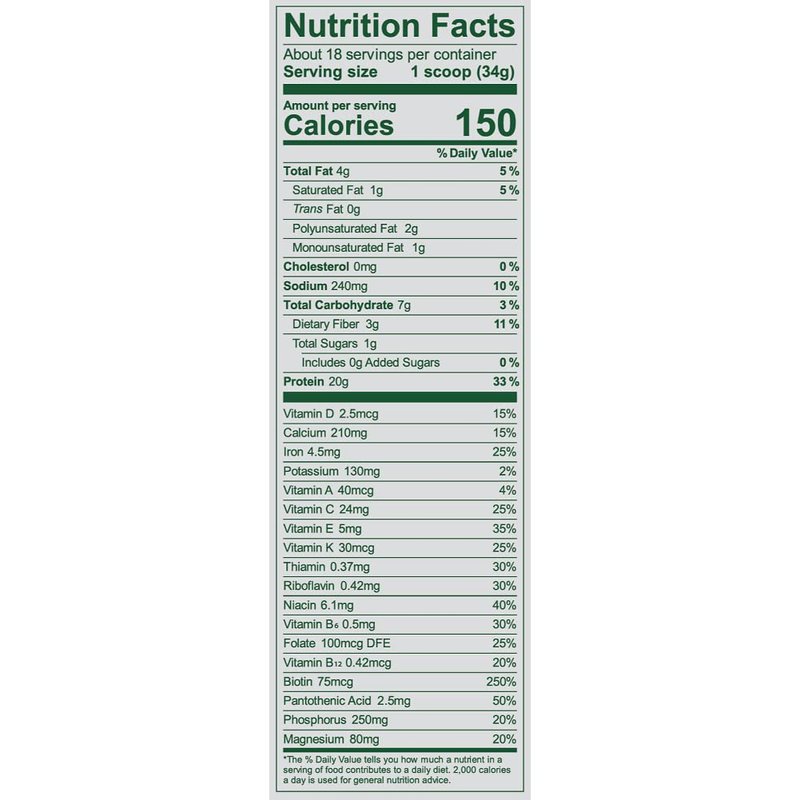 - MORE THAN JUST PROTEIN: 25 percent DV OF 11 vitamins and minerals per serving, 3g fiber, 1g of omega-3 ALA and antioxidant vitamin C to help support the immune system. From real, plant-based ingredients to give you a head start on your daily essentials.