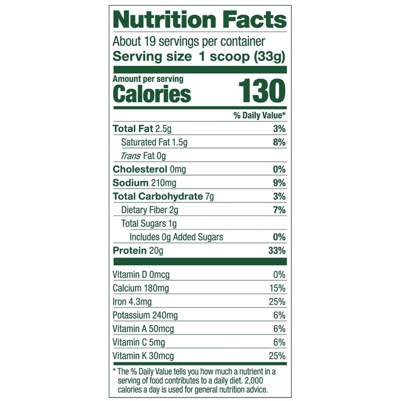 - PROTEIN AND GREENS adds effortless nutrition to your every day, sweetened with stevia—no added sugar, and 120 calories per serving.