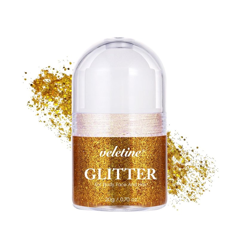 Veletine Body Glitter, Roll-on Glitter for Body, Face, Hair and Lip,Shimmer Three-Dimensional Glitter, Halloween Sparkling Body Contouring Highlight Makeup, 20g/0.7 oz (Yellow)