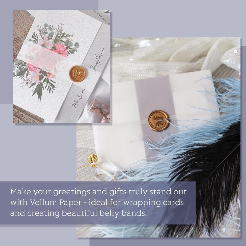 - HIGH QUALITY: These vellum sheets have a smooth surface and is sturdy and resistant to tearing. It provides an excellent protection when wrapping greeting cards.