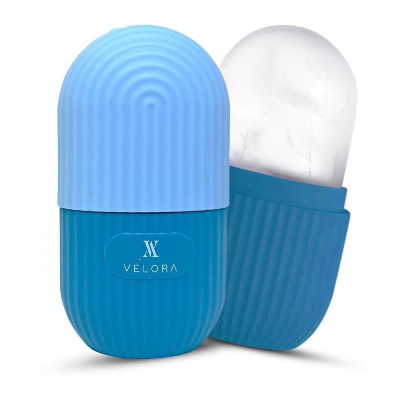 VELORA Silicone Ice Roller for Face and Eyes - Reusable Ice Mold for Puffiness Relief, Bright Skin, Fine Lines, Pores, Acne - Ice Face Roller (Blue)