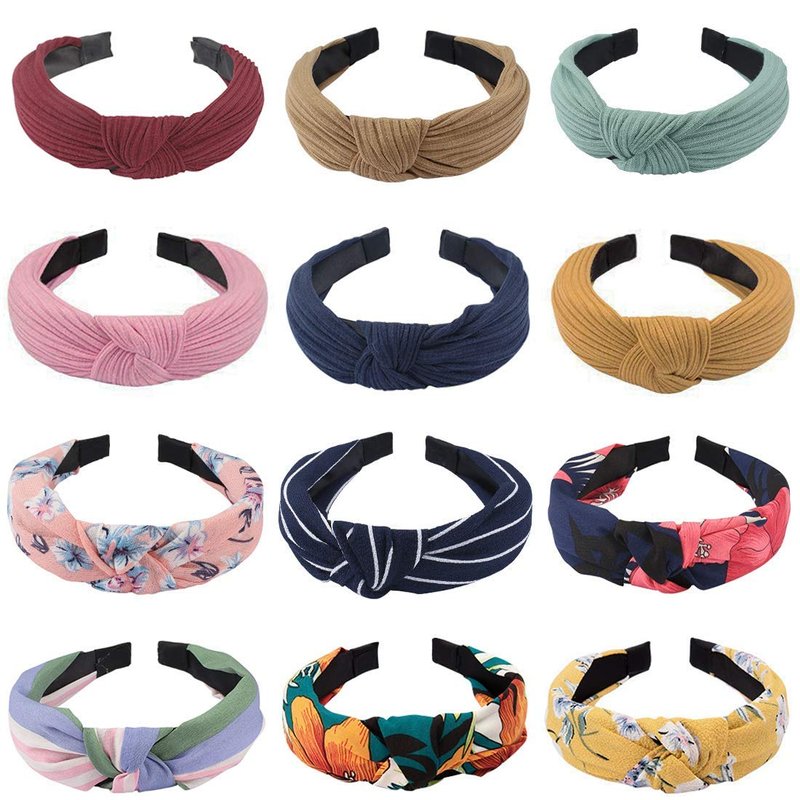 12 pcs knotted headband for women, (each color per pcs) this set of headbands for women include flower patterned headbands, stripe headbands,bohemian headbands, solid color pattern headbands. Meet your different needs and have a good mood for everyday.