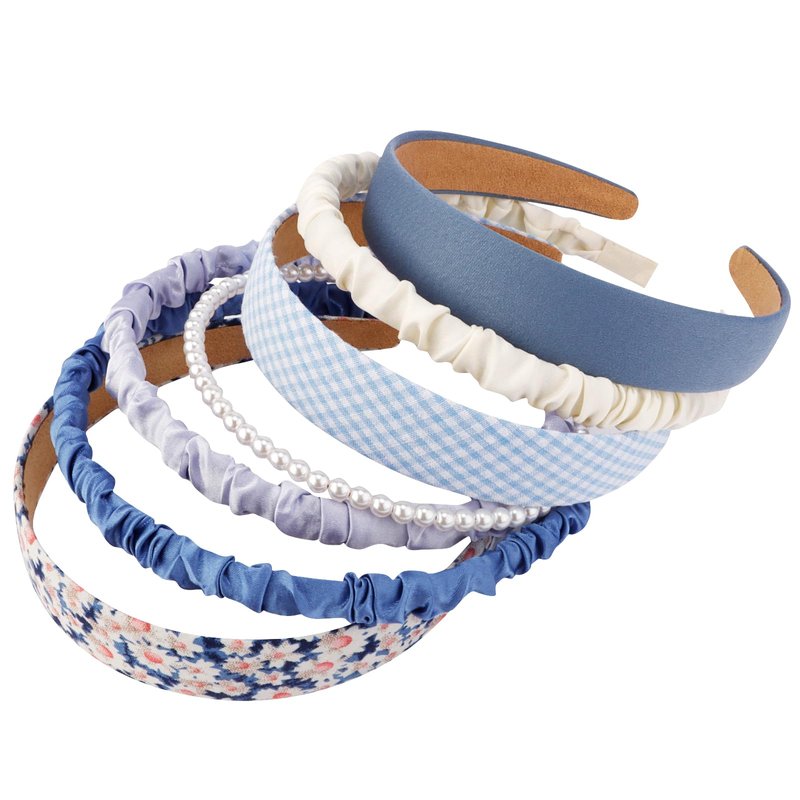 VELSCRUN 7 Pcs Different Headbands for Women Fashion Blue Solid Head Bands Pearl Headband Non Slip Hair Band for Womens Thin Thick Short Hair Face Wash Hair Accessories Gifts for Women Gilrs