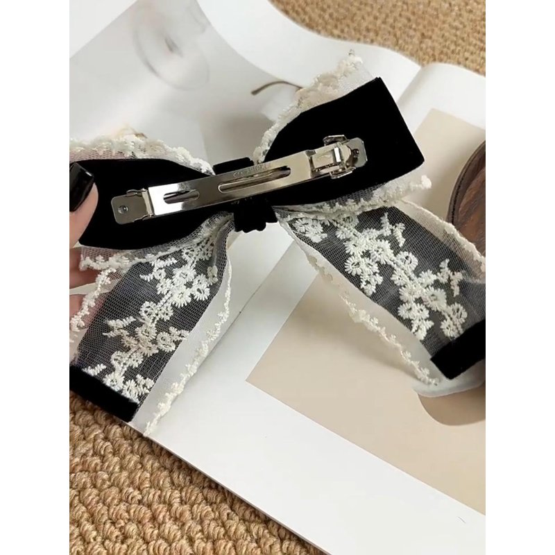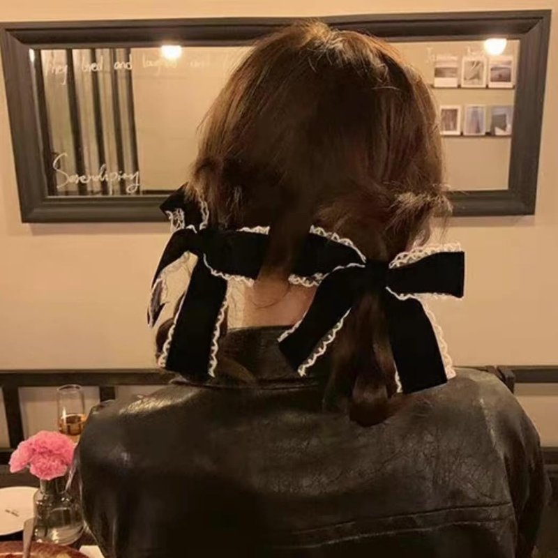Velvet Bow Hair Clips for Women Girls Black Ribbon Bowknot Spring Hair Clips for Thick Hair Cute French Lace Bow Ponytail Holder Nonslip Metal Hair Barrette Snap Hairpins Sweet Hair Accessories