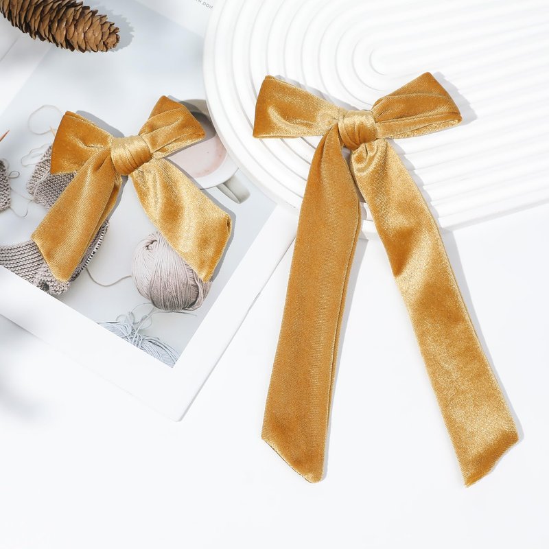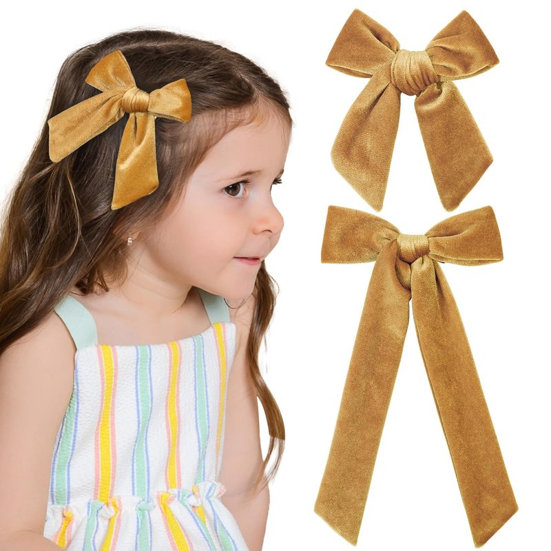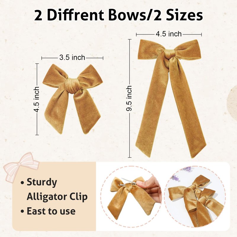 Velvet Hair Bows in 2 Sizes - 5" & 3.5" Soft Ponytail Knot Bows with Alligator Clips for Toddlers and Little Girls - Gold Hair Accessories