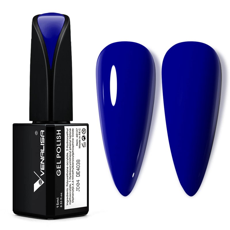 VENALISA 15ml Royal Blue Gel Nail Polish, Navy Blue Gel Polish Dark Deep Cobalt Blue Color Soak Off UV LED Nail Gel Polish Nail Art Starter Manicure Salon DIY at Home, 0.53 OZ