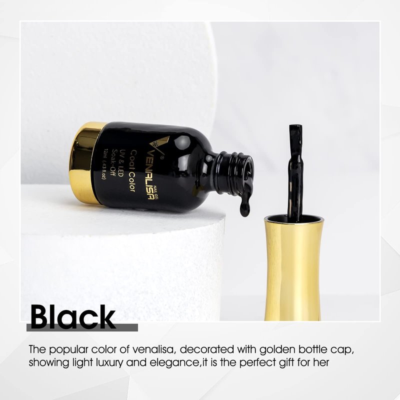 VENALISA Gel Nail Polish, 12ml Black Color Soak Off UV LED Nail Gel Polish Nail Art Starter Manicure Salon DIY at Home, 0.43 OZ