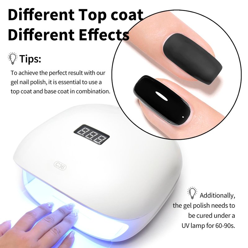 - ❤TIPS: Cure under UV or LED Lamp for 90-120 secs. Base and Top coat required