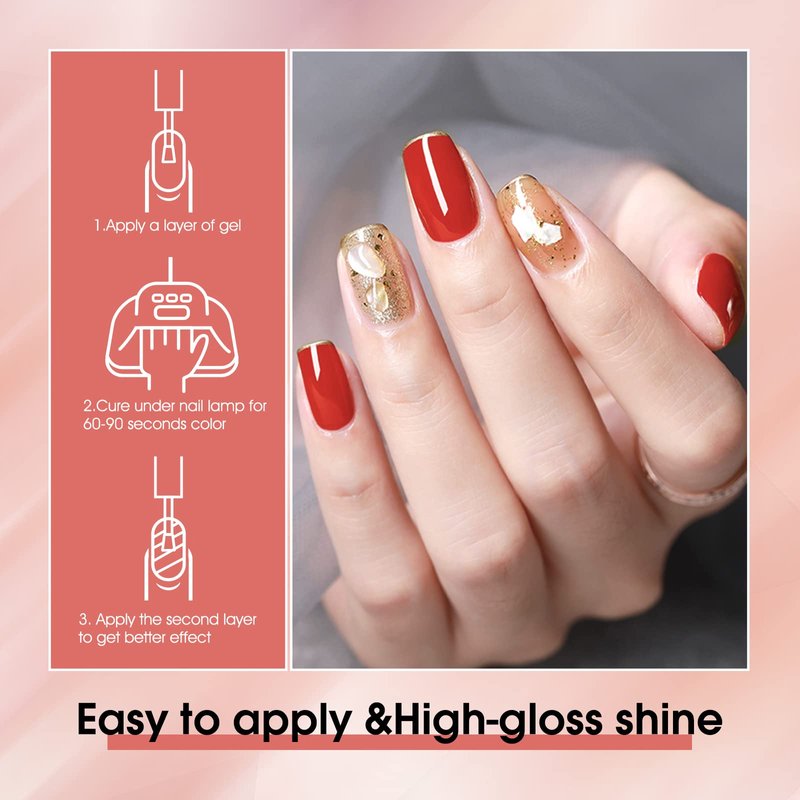 - ❤HEALTHY: The Gel Nail Polish is made of Natural Resin which is Harmless Resin, NON-TOXIC, Environmentally Friendly, High Quality and Low Smell