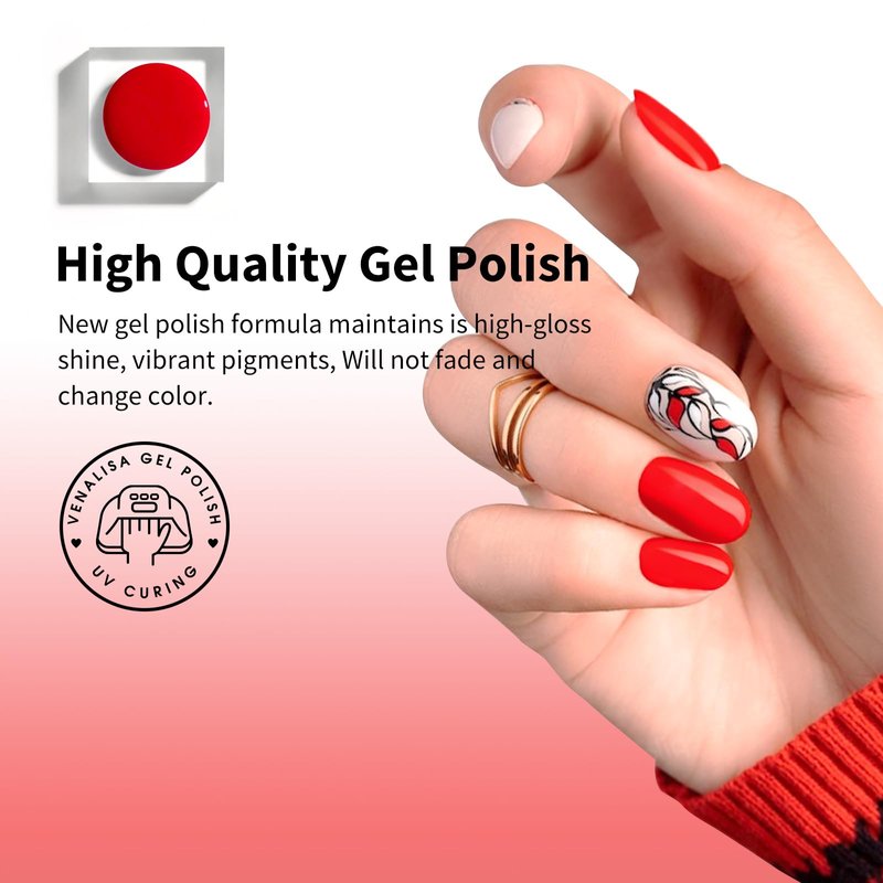 VENALISA Gel Nail Polish, 12ml Bright Red Color Soak Off UV LED Nail Gel Polish Nail Art Starter Manicure Salon DIY at Home, 0.43 OZ