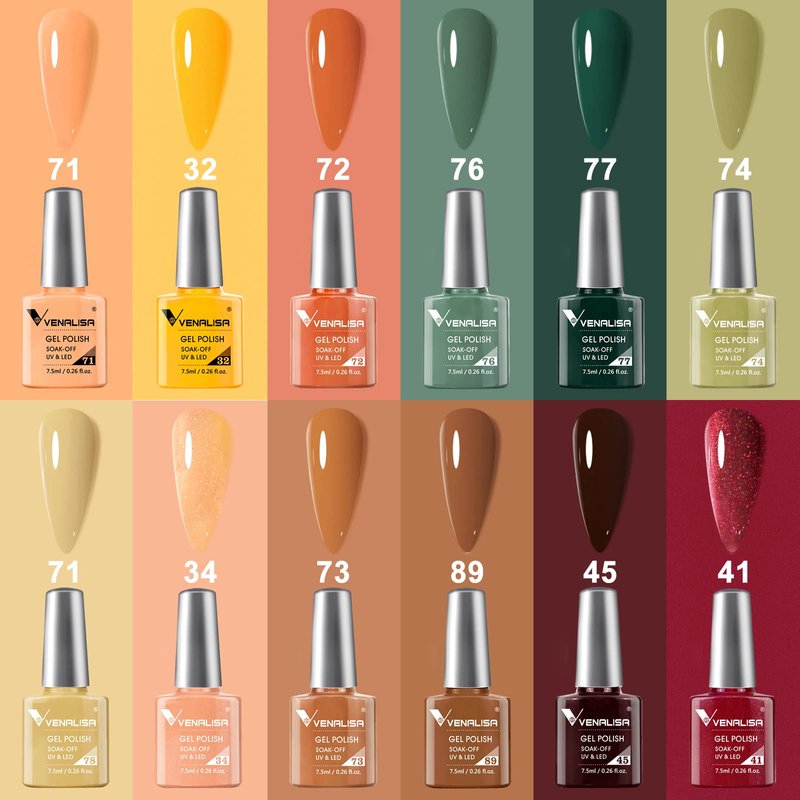 - ❤VENALISA Gel Polish Kit: Compared with other 5ml small capacity, our Gel Nail Polish capacity is 7.5ml * 12Pcs, which more durable