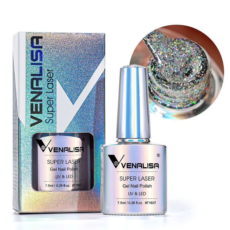 VENALISA Holographic Gel Nail Polish,Rainbow Glitter Effect Sparkling Colors Glossy Soak off Nail Gel Collection Lamp Required for Nail Art Design