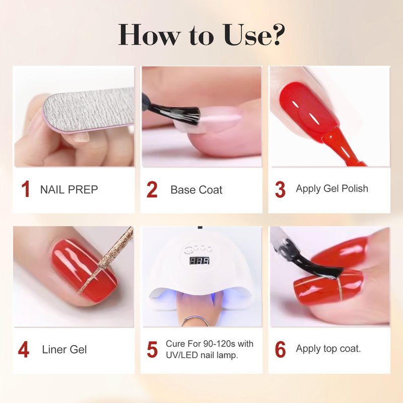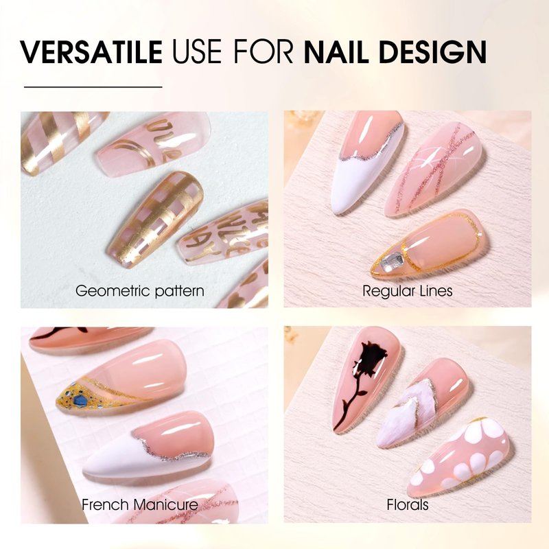- Versatile Use: Liner gel polish can be used for various nail art techniques, including striping, outlining, geometric patterns, and more intricate freehand designs