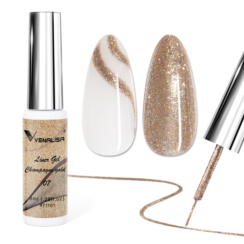 VENALISA Liner Gel Nail Polish 8ML 1 Pcs Gold Gel Polish With Thin Brush For French Nail Art Swirls Nail Design Soak Off UV Gel DIY at Home Manicure Salon