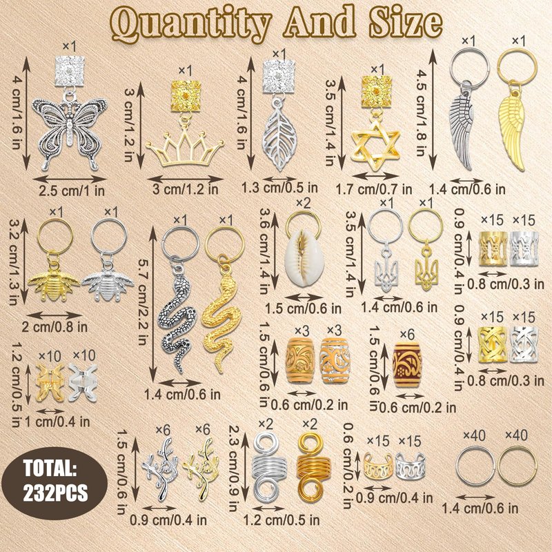 VENOFEN 232PCS Hair Jewelry for Braids Butterfly Braid Clips Silver Loc Jewelry Gold Dreadlock Beads Wooden Beads for Hair Metal Cuffs Rings Braids Accessories Hair Decoration for Women and Girls