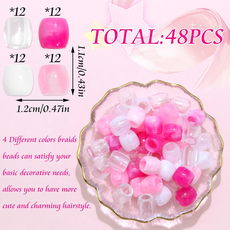VENOFEN 48PCS Pink Hair Beads Dreadlock Beads for Hair White Braid Beads Light Pink Pony Beads for Kids Girls Jewelry Making Hair Accessories