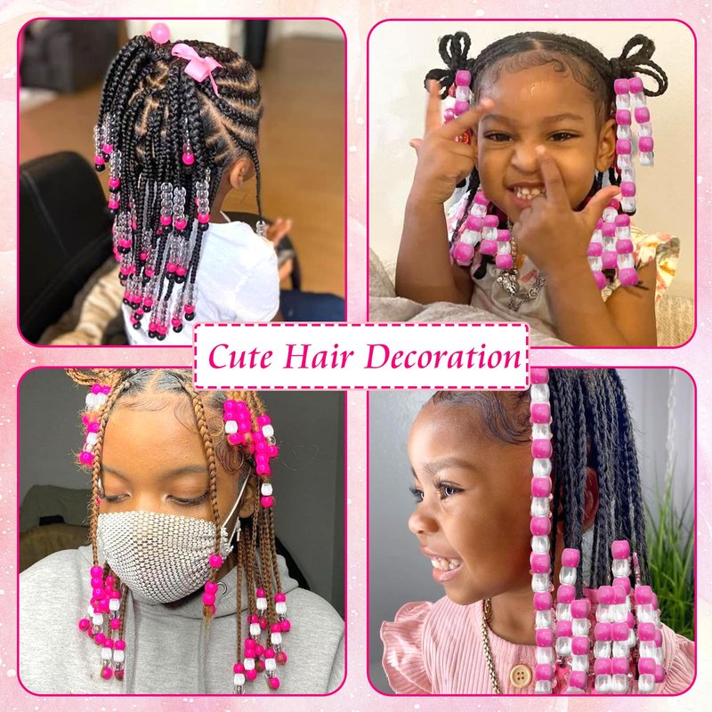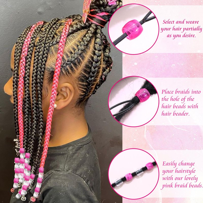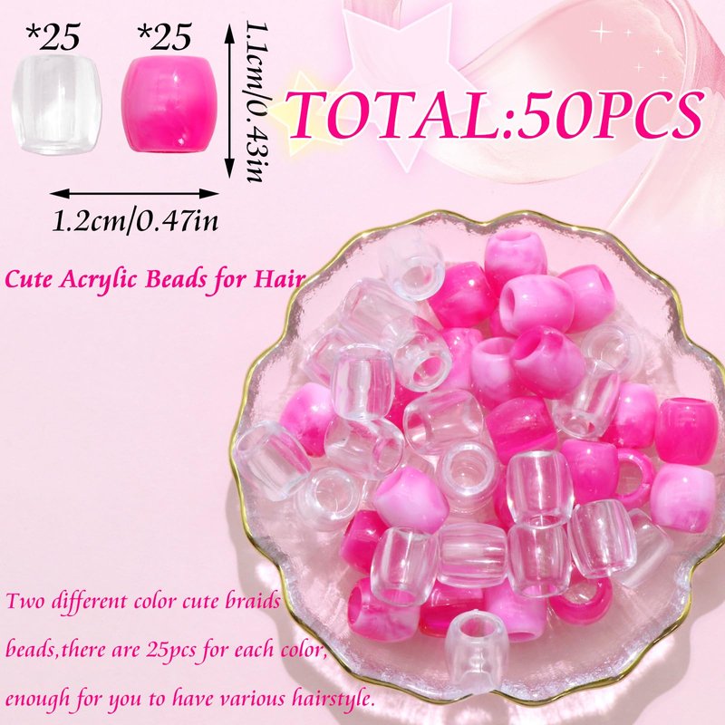 VENOFEN 50PCS Pink Hair Beads for Braids Clear Beads Loc Jewelry Dreadlock Accessories Cute Acrylic Pony Beads Hair Decoration for Girls and Women