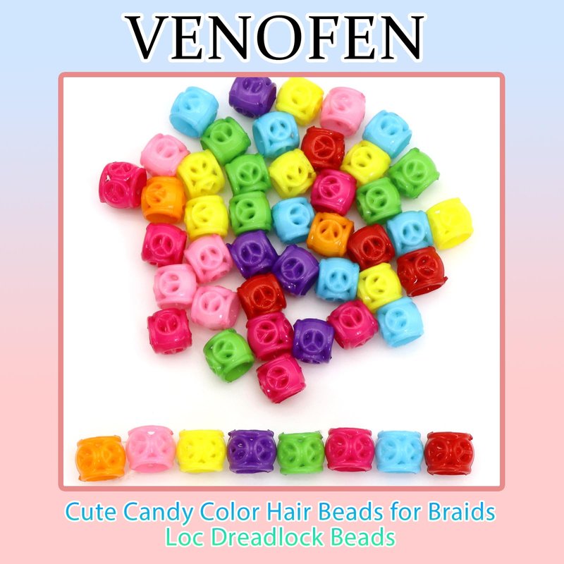 VENOFEN Colorful Acrylic Beads for Braids, Dreadlocks, and Hair Accessories - 50PCS Hollow Beads Bulk for DIY Jewelry Making, Kids and Women