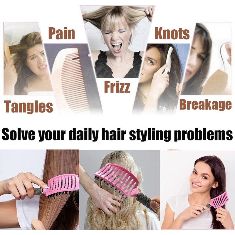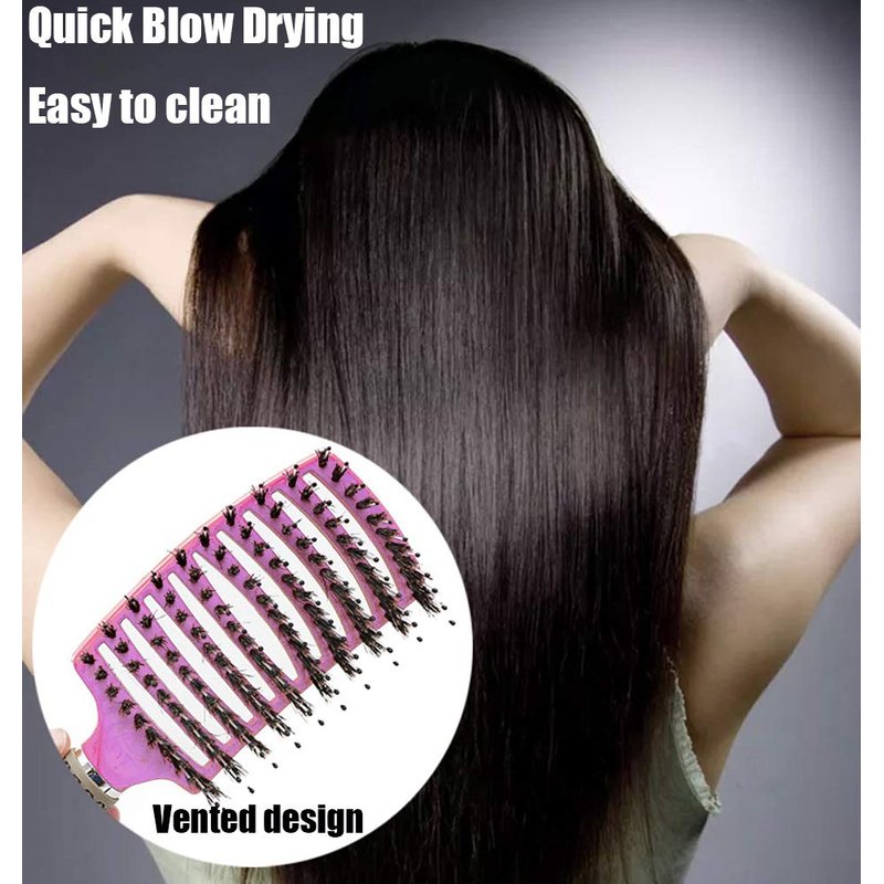 This curved vented paddle brush combines the benefits of boar bristle brush and hair detangling brush, it is designed for those who want to get better hair care and create stylish look