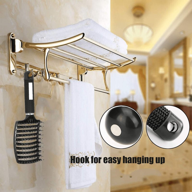 - Ergonomically curved shape: The no tangle boar hair brush fits well with the outline of our head for comfortable hair brushing and scalp massaging, reduce hair breakage, works on wet or dry hair, easy to create a stylish look
