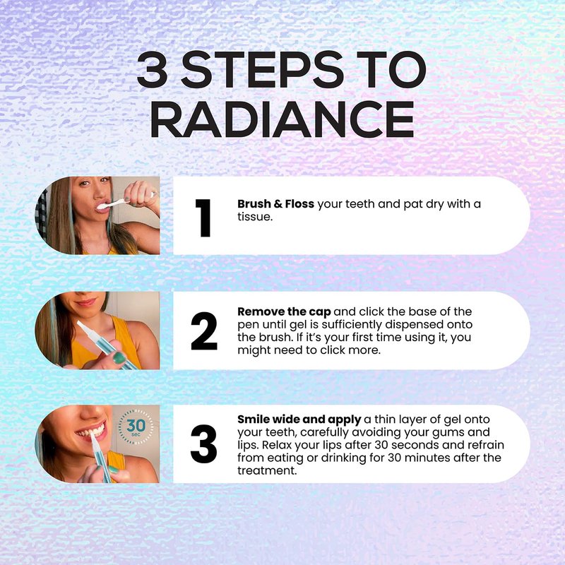 - High quality & Effective - Our teeth whitening gel pen is using nothing but the finest ingredients, provides fast tooth whitening results with only 30 seconds of daily use. This teeth white pen contains 20+uses and brighten your teeth 4-8 shades whiter with consecutive use.