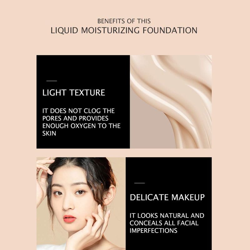 - Benefits of this Liquid moisturizing foundation. Light texture It does not clog the pores and provides enough oxygen to the skin. Delicate makeup It looks natural and conceals all facial Imperfections.