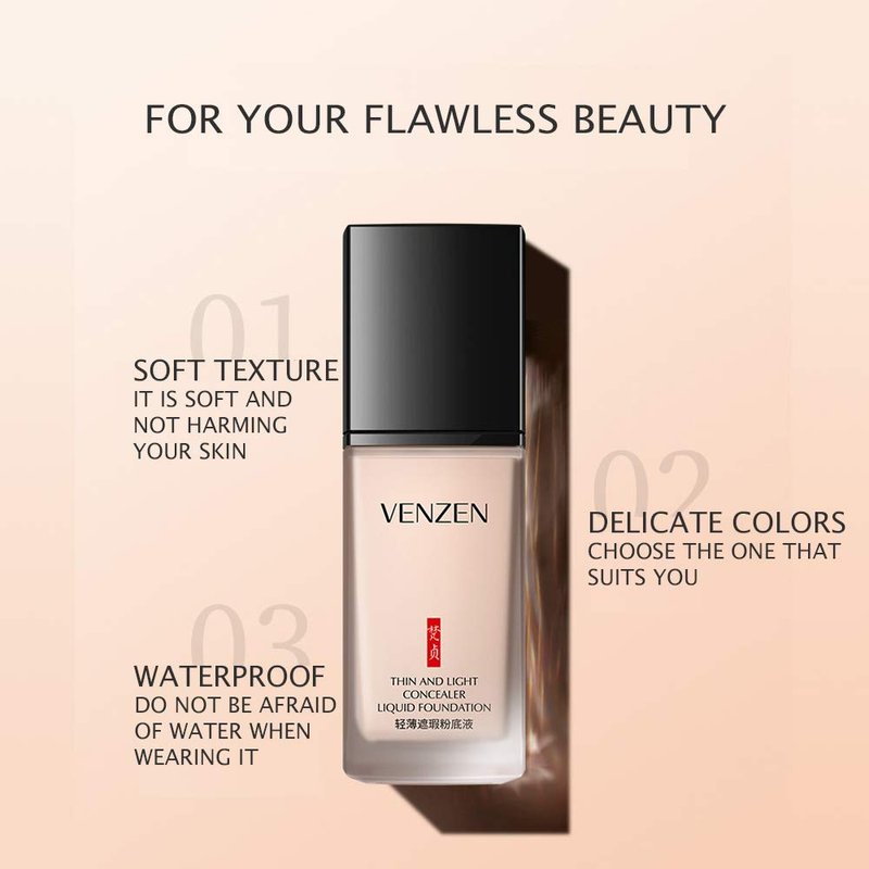 VENZEN Thin Light Concealer Liquid Foundation Waterproof Moisturizing Clear Naked Natural Long-Lasting Soft Texture Rubber Ring Delicate Colors (#01 NATURAL (6761))