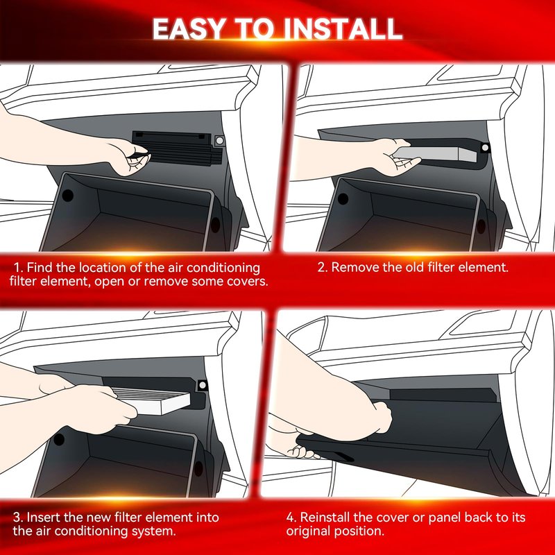 - 【Easy to Replace】 Cabin air filter replacement is easy to replace and can be changed by the driver in a few simple steps; it is recommended that cabin filter replacement be replaced every 12 months or 12,000 miles in order to maintain the air quality in the vehicle, protect the health of the driver and keep the air conditioning system functioning properly.