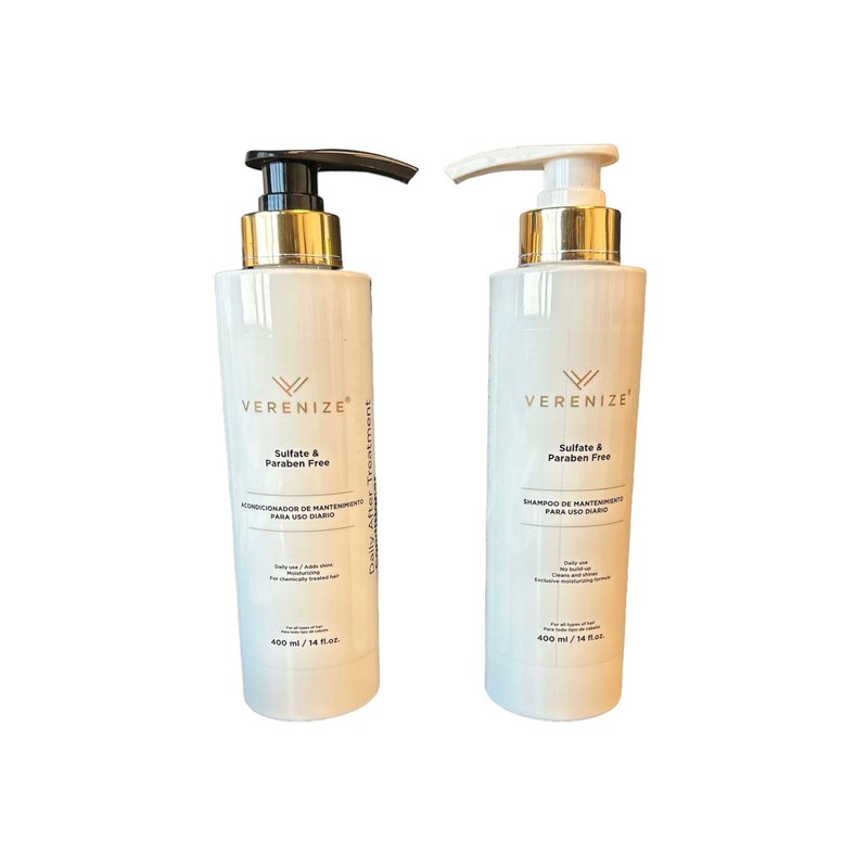 Verenize Sulfate-Free Shampoo and Conditioner Set Description: Pamper your hair with the nourishing benefits of the Verenize Sulfate-Free Shampoo and Conditioner Set. Specially formulated to cleanse and hydrate without the use of harsh sulfates, this duo is perfect for all hair types, including color-treated and sensitive hair. Gentle Cleansing: The sulfate-free formula effectively removes dirt, oil, and product buildup without stripping your hair of its natural moisture. Nourishing Hydration: Infused with natural oils like argan and jojoba, this set deeply conditions and hydrates, leaving hair soft, smooth, and manageable. Color-Safe Formula: Ideal for maintaining the vibrancy of color-treated hair, protecting it from fading, and enhancing shine. Free from Harsh Chemicals: Paraben-free, silicone-free, and sulfate-free, this set ensures your hair is treated with gentle, non-irritating ingredients. Frizz Control and Smoothness: Tames frizz and flyaways, leaving hair sleek and shiny, with long-lasting smoothness. Cruelty-Free & Vegan: Made with ethically sourced ingredients, free from animal testing. Ideal For: Curly, wavy, or textured hair Dry or damaged hair Color-treated hair Daily use