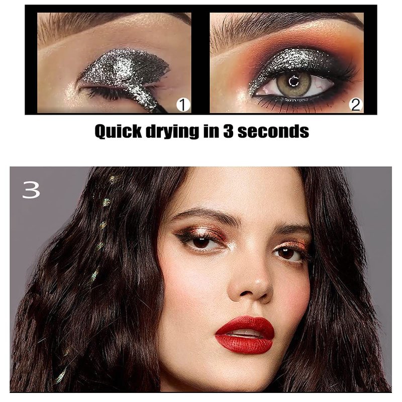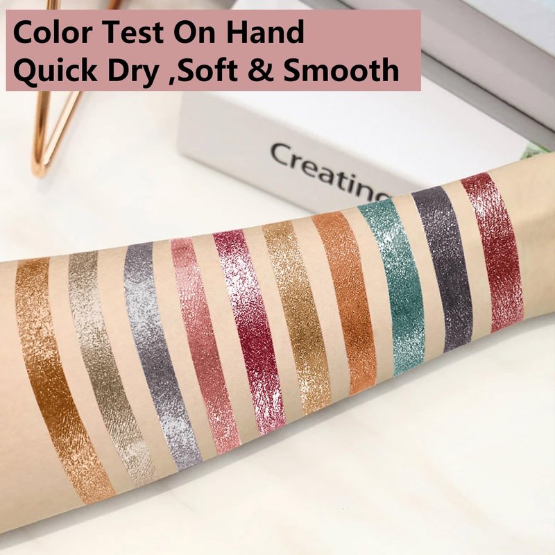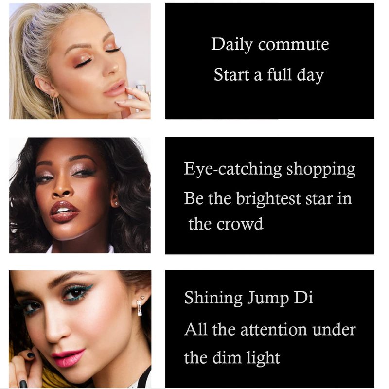 - Metal Sparkling Eye Shadow: Moisturizing texture And specific lightweight, with a slightly shimmering effect, easy application, quick and even drying, locking in most sparkle with minimal fallout.