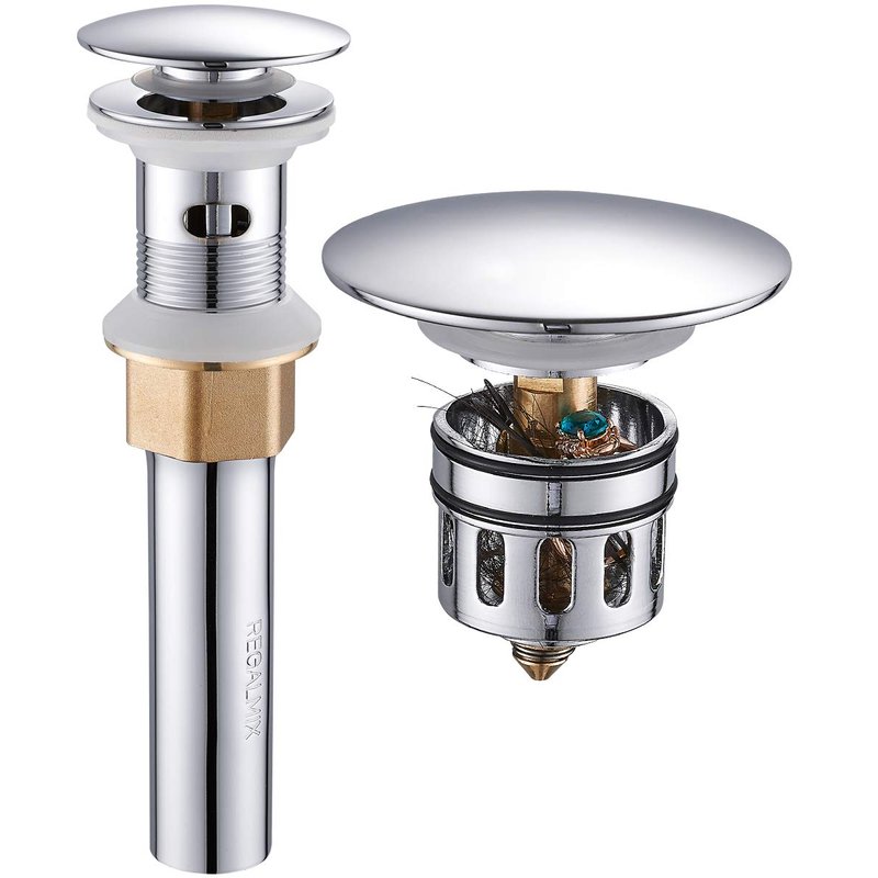 【BUILD-IN STRAINER】Unlike regular puch button drain,this drain stopper has a anti-clogging basket strainer inside that neatly collecting hairs and prevents the drain from clogging up,stuff will not get into the drain, such as jewelry, ring, dirt and so on.