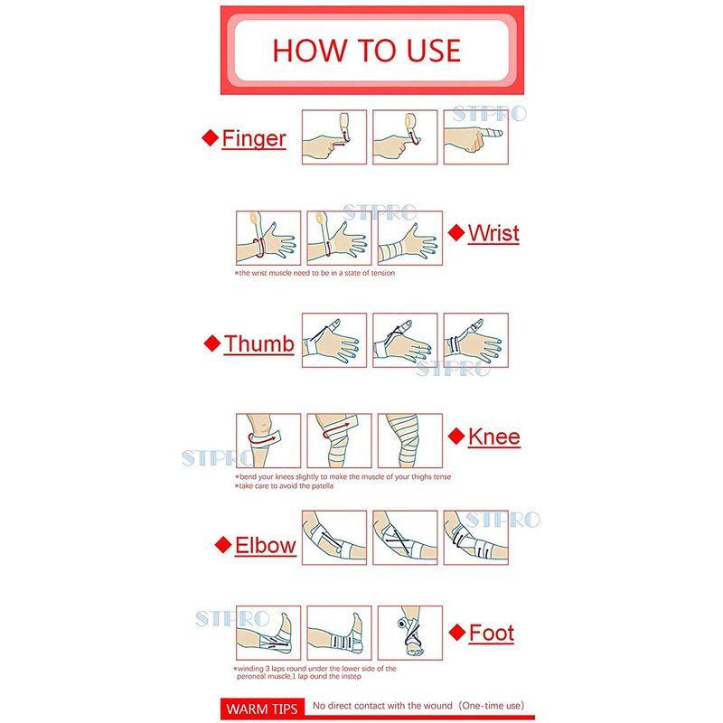 A: 1. Do not entangle too tightly, should reserve a little space; 2. Do not directly touch the wound; 3. Should be used 30 minutes before exercise; 4. Do not remove the self adhesive bandage frequently.