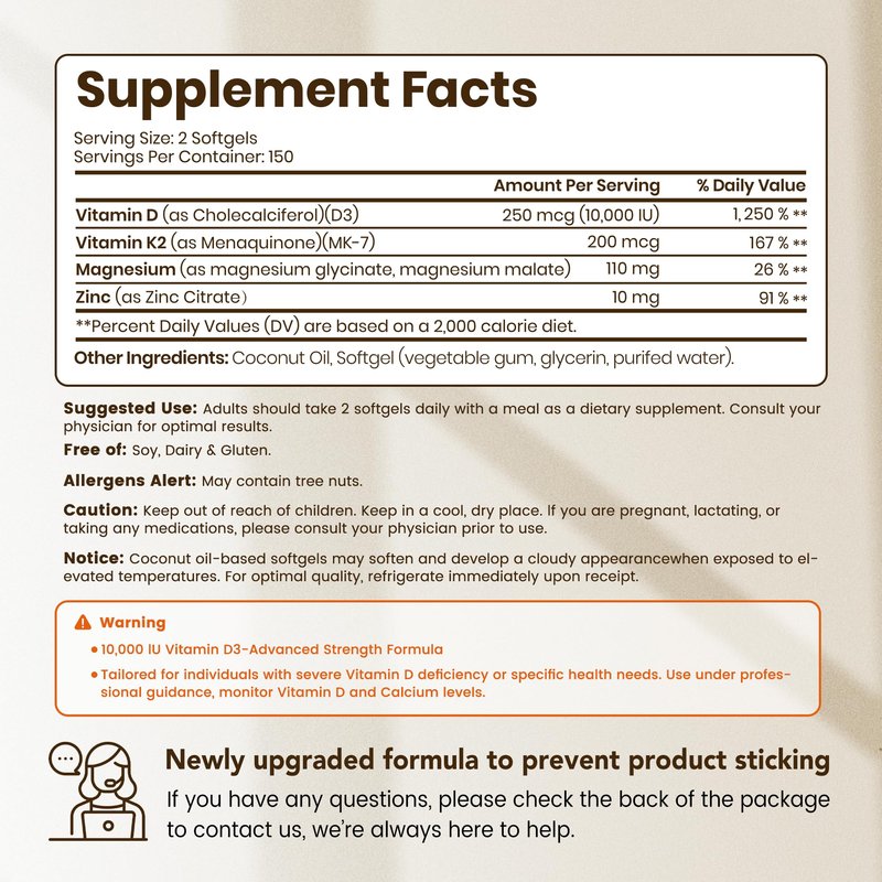 - Style: D3 K2 Magnesium 10000 IU 300 Softgels