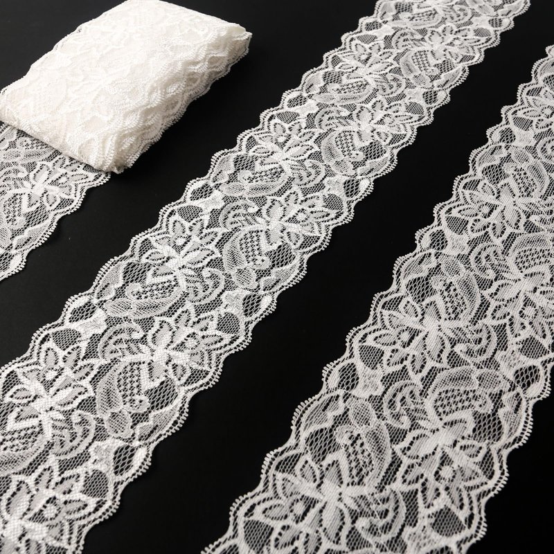 Material: the white lace trim is made from polyester, elastic lace fabric