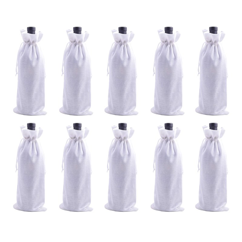 Viamto 10pcs White Burlap Wine Bags, 15.0cmx35.0cm/6.0''x14.0'' Drawstring and Lining Wine Bottle Burlap Bags, Hessian Gift Bags, Storage Pouches