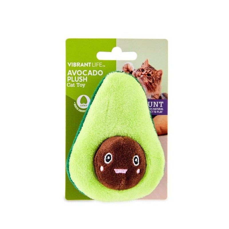 Satisfy your cat’s hunger for playtime with the Vibrant Life Green Avocado Plush Cat Toy. . The core is attached to the avocado with a bungie making playtime fun and interesting. The Vibrant Life Green Avocado Plush Cat Toy can help fight boredom and encourage exercise. This toy contains catnip.