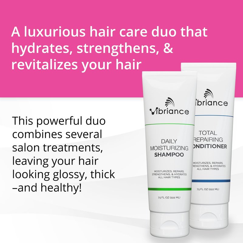 - STRENGTHENS, HYDRATES, & REPAIRS: Carefully formulated to our highest standards, Vibriance Moisturizing Shampoo and Total Repairing Conditioner transform your hair with every wash, providing deep moisturization while improving hair elasticity and texture, reducing frizz and preventing split ends.