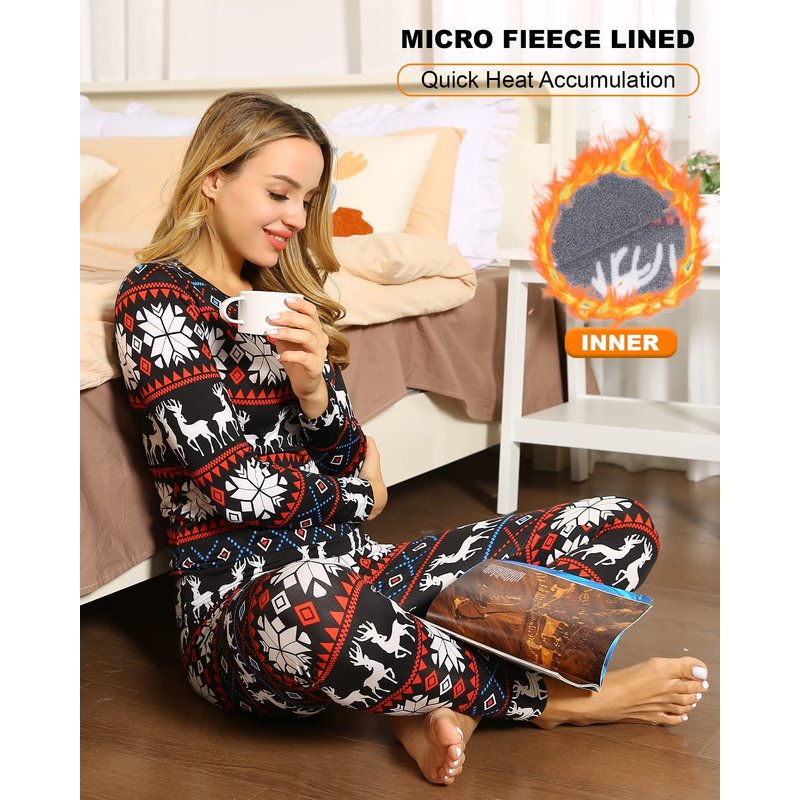 ViCherub Womens Thermal Underwear Set Long Johns Base Layer Fleece Lined Cold Weather Soft Top Bottom Christmas Small