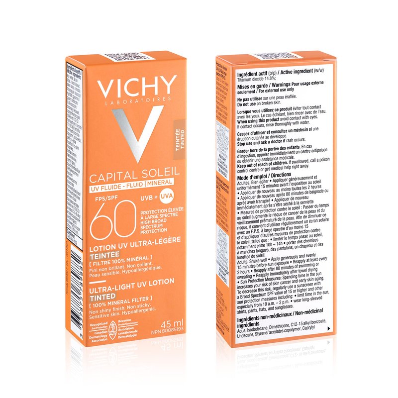 Vichy Capital Soleil Tinted Mineral Sunscreen for Face SPF 60, Titanium Dioxide Face Sunscreen, Travel Size Sunscreen, Water Resistant, Light weight Sun Protection Creams, Gels, & Lotions
