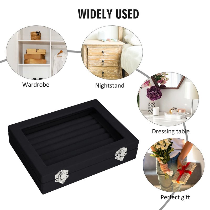 - Focus on practicality: The lid is composed of a transparent glass lid, which can quickly discover the jewelry you are looking for through the glass. To prevent the lid from accidentally opening when carrying the jewelry display box, we have adopted a design of two locks.