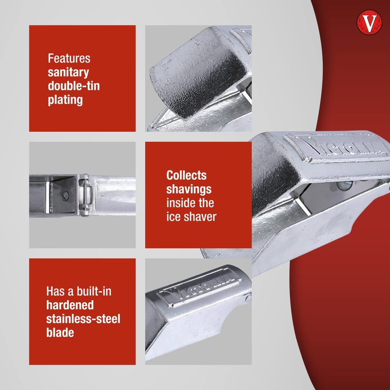- EASY TO USE: Durable, rugged, and made to last, this 1.5-pound Cast-Iron Ice Shaver easily creates perfect ice shavings. Simply push the shaver with the blade side down across the top of an ice block several times. The shaved ice collects inside the device and is ready for immediate use.