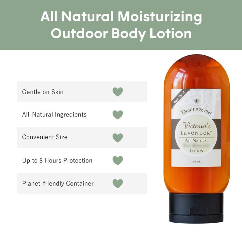 Victoria's Lavender All Natural Moisturizing Body Lotion with Essential Oils - All Natural Body Lotion for Skin Protection for Outdoor & Leisure Activities - Backpackers, Campers, Hikers - 4 oz