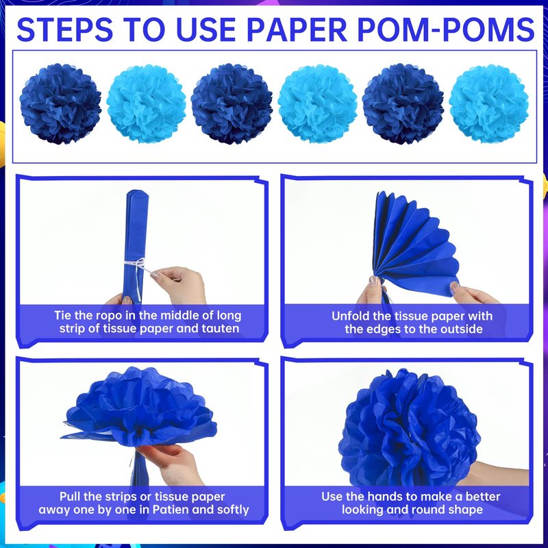6 x Blue Tissue Paper Pompoms