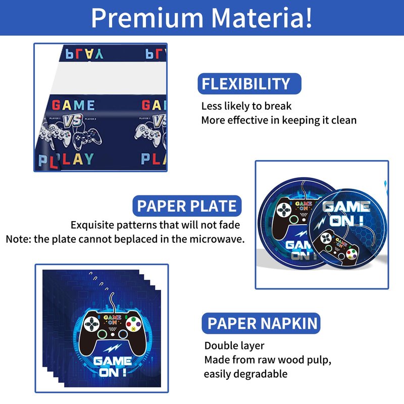 - Reliable Material: All of our game party supplies are made of reliable paper, Video game birthday decorations tablecloths is colorful and bright without fading easily, allowing you to celebrate without worries of leaks or tears