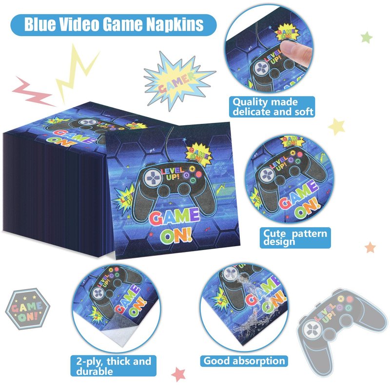 - 【Soft and practical to use】: Composed of high quality 2-layer paper material, these gaming party supplies are soft, disposable and absorbent, not easy to tear when in use; you can clean them easily, just need to throw them away after you use them.
