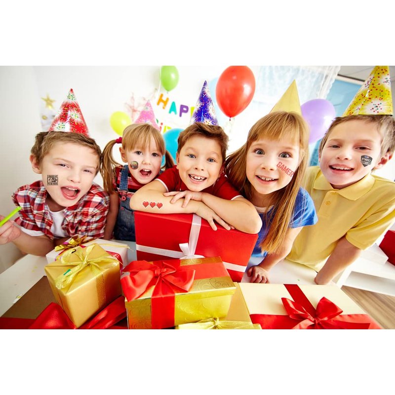 These tattoo stickers are perfect party favor to bring a smile on your childβs face. Stick them in loot crates and goodie bags and youβll be the best parent at the party!
